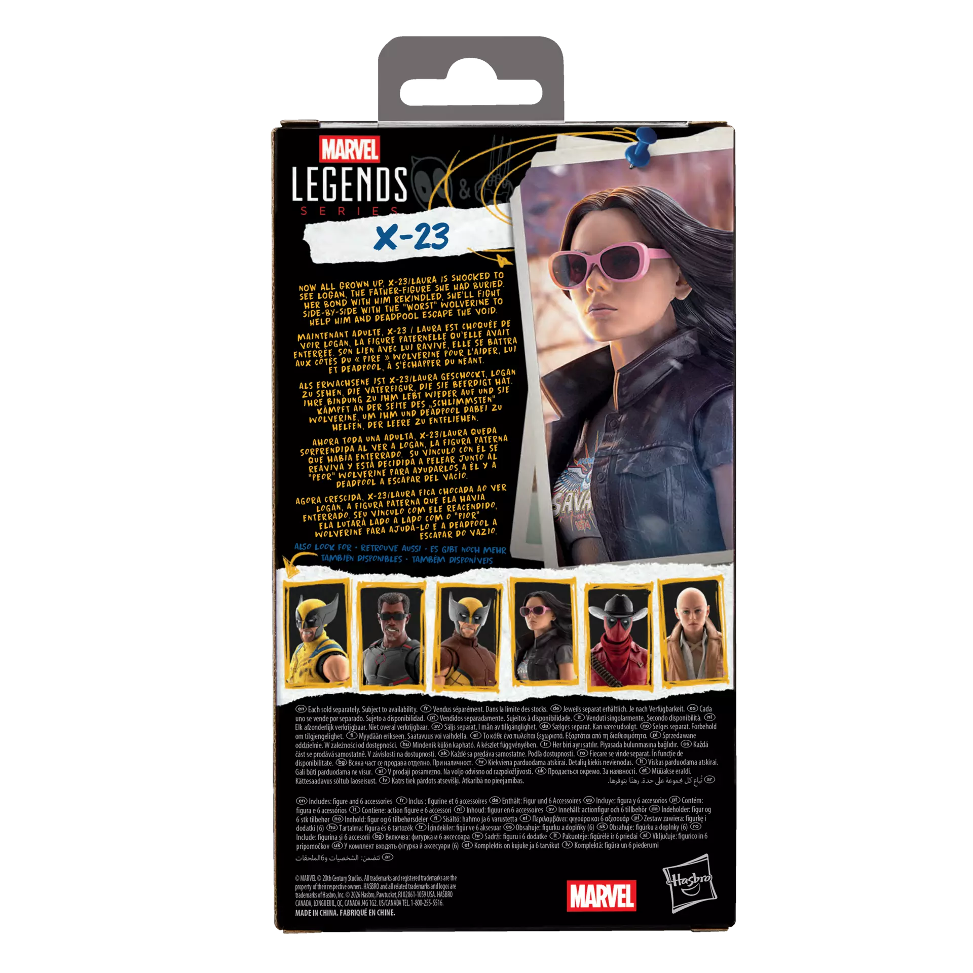 Cette figurine de collection Marvel à l'échelle 15 cm est inspirée de l'apparence du personnage dans le film Deadpool & Wolverine de Marvel Studios. On peut recréer des scènes inspirées du film sur son étagère avec les figurines articulées Marvel Legends et les pièces de collection Marvel. Avec un design premium et une tête, des bras et des jambes entièrement articulés Avec 6 accessoires, dont une tête et des mains alternatives pour l'exposer avec ou sans ses griffes et lunettes de soleil Avertissements À partir de 14 ans. ATTENTION : DANGER D’ÉTOUFFEMENT – Petites pièces. Ne convient pas aux enfants de moins de 3 ans. Copyright 2026 MARVEL. © 20th Century Studios. Hasbro et tous les termes associés sont des marques de commerce de Hasbro.