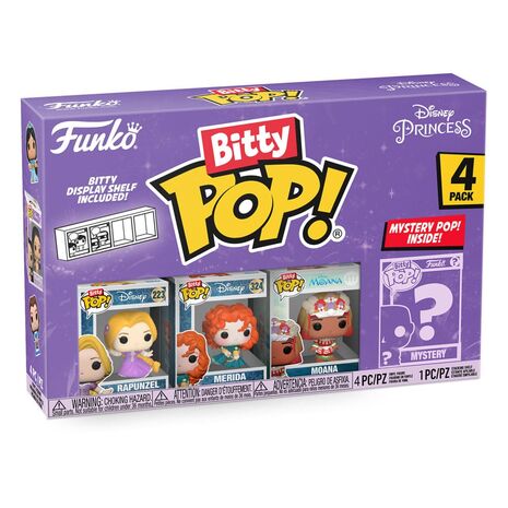 Pack de 4 figurines en vinyle taille env. 2,5 cm, en emballage boîte-fenêtre. Chaque figurine a son propre mini-présentoir en acrylique rigide. La base du présentoir est détachable et sert de socle à la figurine.