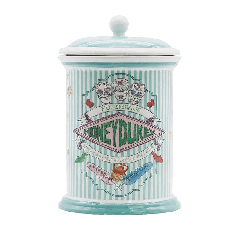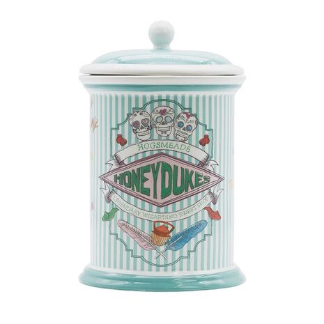 Retrouvez l’ambiance mythique de la boutique Honeydukes située à Pré-au-Lard avec toutes ses jolies couleurs, ses confiseries légendaires comme les dragées surprises de Bertie Crochue ou les Fizwizbiz, sur cette magnifique boîte à cookies Harry Potter.