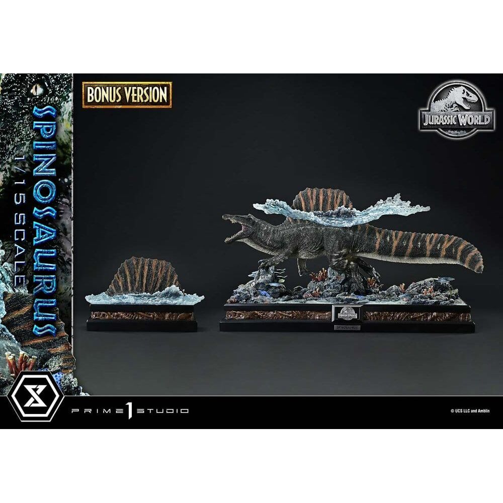 Une voile rayée à la surface, une queue massive en dessous. Le dinosaure carnivore semi-aquatique émerge à l'échelle 1/15. Pour collecter l'ADN des trois dinosaures les plus emblématiques, une expédition pénètre sur une île interdite dans "Jurassic World: Rebirth of the Earth". De ce blockbuster qui ouvre un nouveau chapitre pour la série, le Spinosaurus rejoint la Legacy Museum Collection. Le Spinosaurus revient à l'écran en tant que dinosaure semi-aquatique. Cette statue présente sa forme nouvellement réinterprétée aux côtés du paysage marin. Sa queue en forme de rame et ses quatre pattes agrippant l'eau ont été posées après une analyse approfondie de ses apparitions à l'écran. Les points de contact avec la surface de l'eau et le terrain rocheux créent également une sensation de flottabilité, capturant sa nage puissante. Une texture humide au fond de ses mâchoires grandes ouvertes. Les rayures verticales emblématiques, teintées d'un orange patiné. Des palmures développées sur les pattes arrière. Profitant pleinement de la présence immense de l'échelle 1/15, chaque détail est fini avec un haut niveau de définition. Les couleurs et textures superposées sur la peau créent une surface riche et réaliste, tandis que les cicatrices gravées sur tout le corps évoquent une histoire au-delà de la compréhension humaine. La base spécialement conçue, scintillant sous la lumière du soleil, est inspirée d'une mer intacte. Des rochers tachetés et patinés, des poissons d'un bel éclat et des crabes d'un rouge vif — chaque sculpture et couleur est soigneusement affinée pour créer une scène sauvage digne de l'habitat d'un dinosaure. La version Bonus comprend également une vignette qui capture un moment océanique glaçant. Une voile rayée se lève avec une gerbe d'embruns alors qu'elle se rapproche d'un bateau — vivez la peur que Zora et son équipe ont ressentie. Livré dans une taille imposante avec un savoir-faire tridimensionnel méticuleux, ce Spinosaurus apporte le frisson de la mer à votre collection. * Limité à 350 exemplaires dans le monde. Spécifications du produit : - Socle sur le thème de Jurassic World Rebirth - 1 x Vignette "Voile de Spinosaurus" [PIÈCE BONUS]