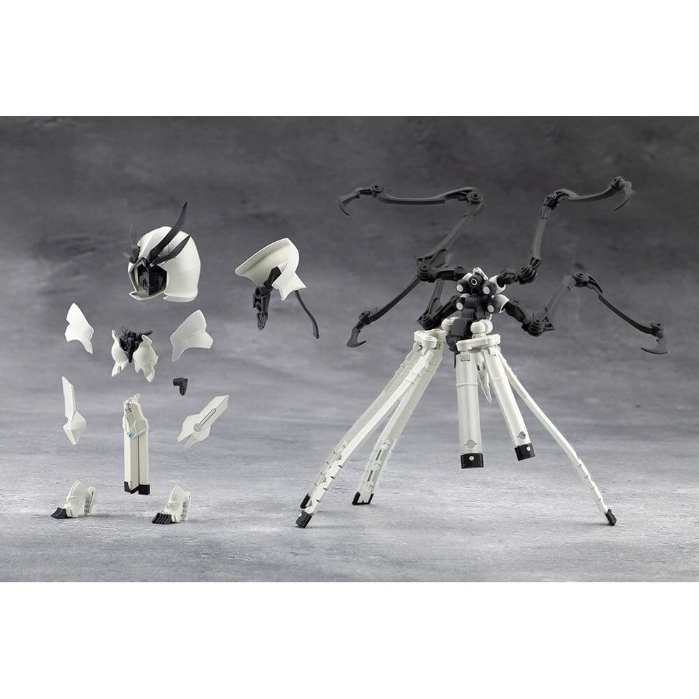 Ce kit est une variation de couleur du kit Metamorphose Unit Exarmor Sorceress avec différentes couleurs de moulage. Exarmor White Sorceress : Le couvre-chef de type capuche et le masque de crâne couvrant le visage sont amovibles. Le masque de base derrière le masque de crâne a trois yeux, le troisième œil étant sculpté dans le front. Les yeux sont mobiles et l'outil inclus peut être utilisé pour ajuster la ligne de mire. Le masque peut être échangé contre des parties de visage d'autres personnages féminins de Megalomaria ou de Sousai Shojo Teien. La visière non blindée peut également être remplacée par des parties de frange des personnages de Sousai Shojo Teien. Même avec la capuche équipée, les parties de frange de certains personnages peuvent être attachées. Les parties de frange de Madoka Yuki, Emma Koishikawa, Koyomi Takanashi, Eimi Nijimura et Short Wig peuvent être équipées. *Non compatible avec les parties de visage et de frange d'Ao Gennai et de Bukiko Kotobuki. Les quatre membres artificiels étendus à l'arrière sont mobiles et peuvent être étendus et rétractés. La base est une rotule de 4 mm, ce qui permet d'attacher des bras féminins de Megalomaria pour créer un personnage à six bras. Les pièces d'armure en forme de jupe sont reliées par des rotules et ont plusieurs points d'articulation, permettant une large gamme de poses dynamiques. Les bras artificiels étendus peuvent également être retirés et utilisés comme familier d'un mage. Pièces de peau d'extension : Les pièces de peau d'extension, qui ont reçu une grande réponse depuis leur annonce, ont également été incluses pour augmenter la compatibilité avec les séries de kits de modèles en plastique de type féminin, telles que Sousai Shojo Teien. Les pièces utilisent la couleur de peau pâle C, qui s'accorde bien avec le costume de Kuon Yakushiji [Costume de Maria Kagaribi] de Sousai Shojo Teien. Coloration : L'unité présente des pièces en six couleurs. Blanc (couleur Seeker), gris clair (couleur Mephisto), gris (couleur Ghillie Dhu), noir (couleur Ghillie Dhu), bleu clair (couleur Emulator) et chair pâle (couleur de peau C).