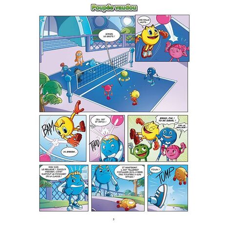 Pac-Man, personnage culte, a enfin sa BD d'aventures avec gags et histoires courtes ! On l'y voit combattre Perfidus, l'affreux seigneur du monde des ténèbres, et défendre le monde contre les fantômes. Mais aussi rire avec ses amis, galérer en cours de maths et manger des pac-gommes. Le héros du jeu vidéo revient avec un dessin animé et SURTOUT une BD pleine de gags ! À dévorer sans modération !