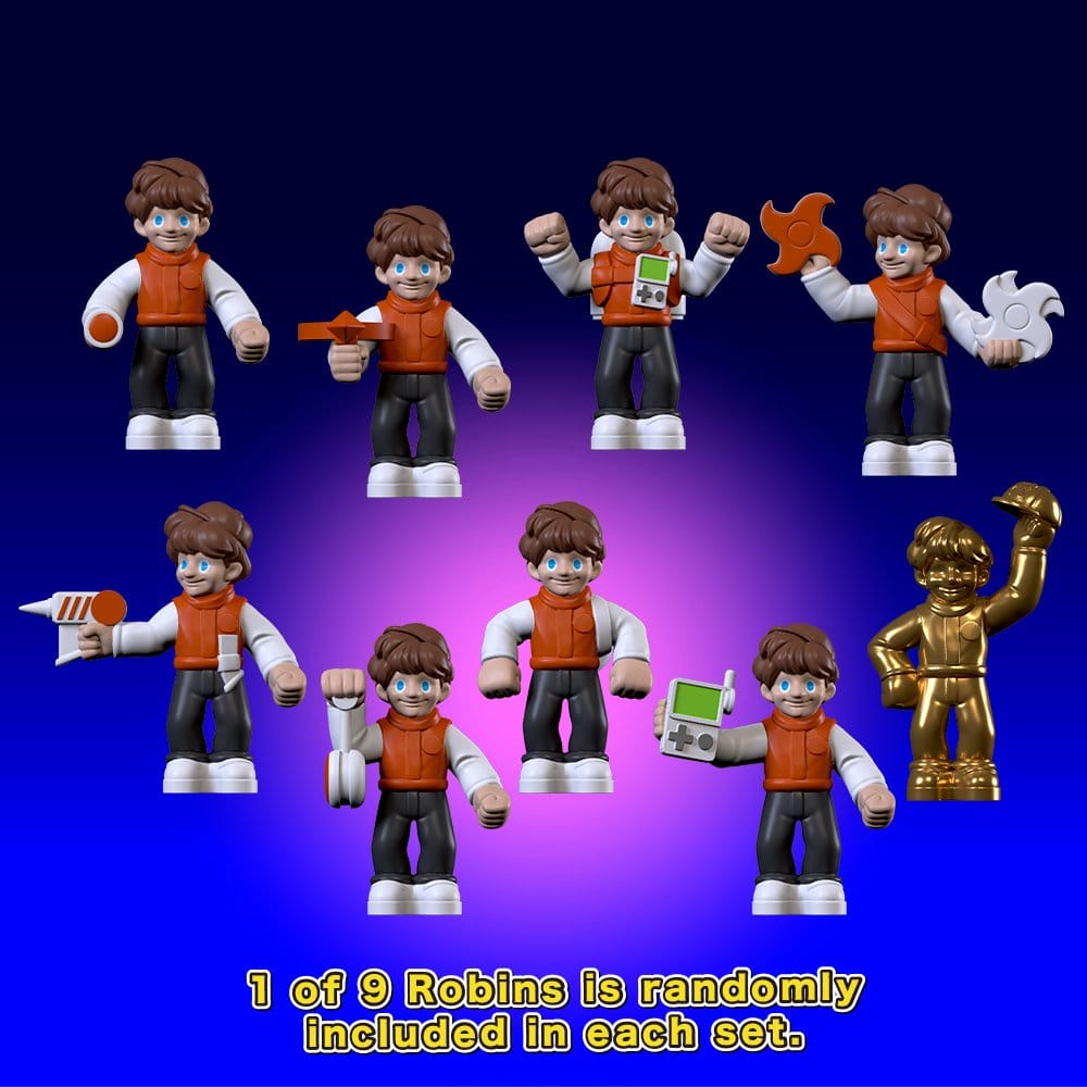 Figurine articulée à assembler avec accessoires. Contenu du set : - 1 x Modèle principal - 1 x Tête d'extraterrestre en forme de calamar - 1 x Vaisseau spatial extraterrestre - 1 x Envahisseur - Figurine Robin (1 des 9 types choisis au hasard)